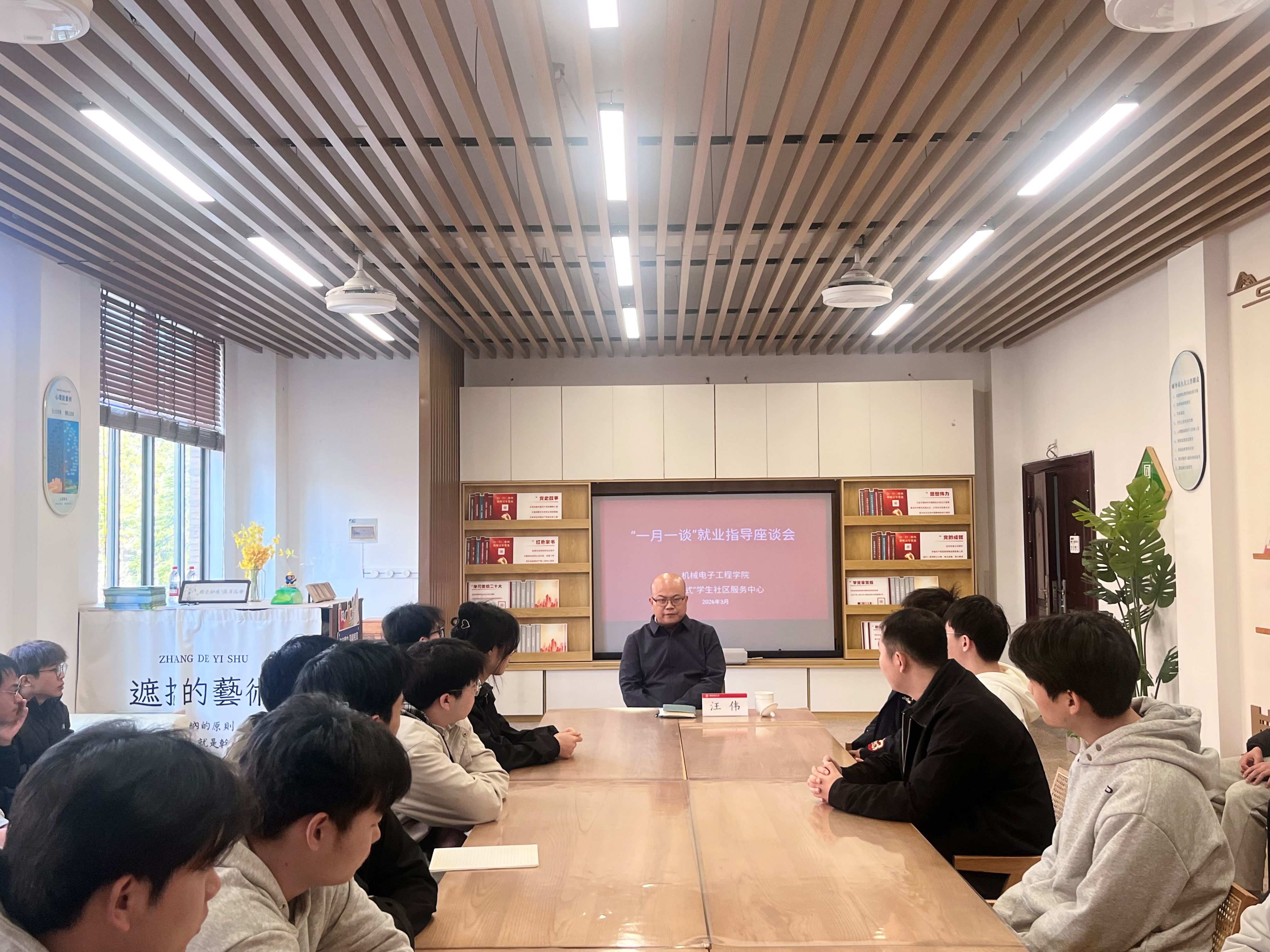 本网讯(刘光盛)3月12日,机械电子工程学院在“一站式”学生社区服务中心举办“一月一谈”就业指导座谈会。学院副院长汪伟(主持行政工作)与毕业年级学生代表进行面对面交流,围绕求职面试技巧、岗位选择策略及职业生涯规划等学生关切问题开展专题指导。