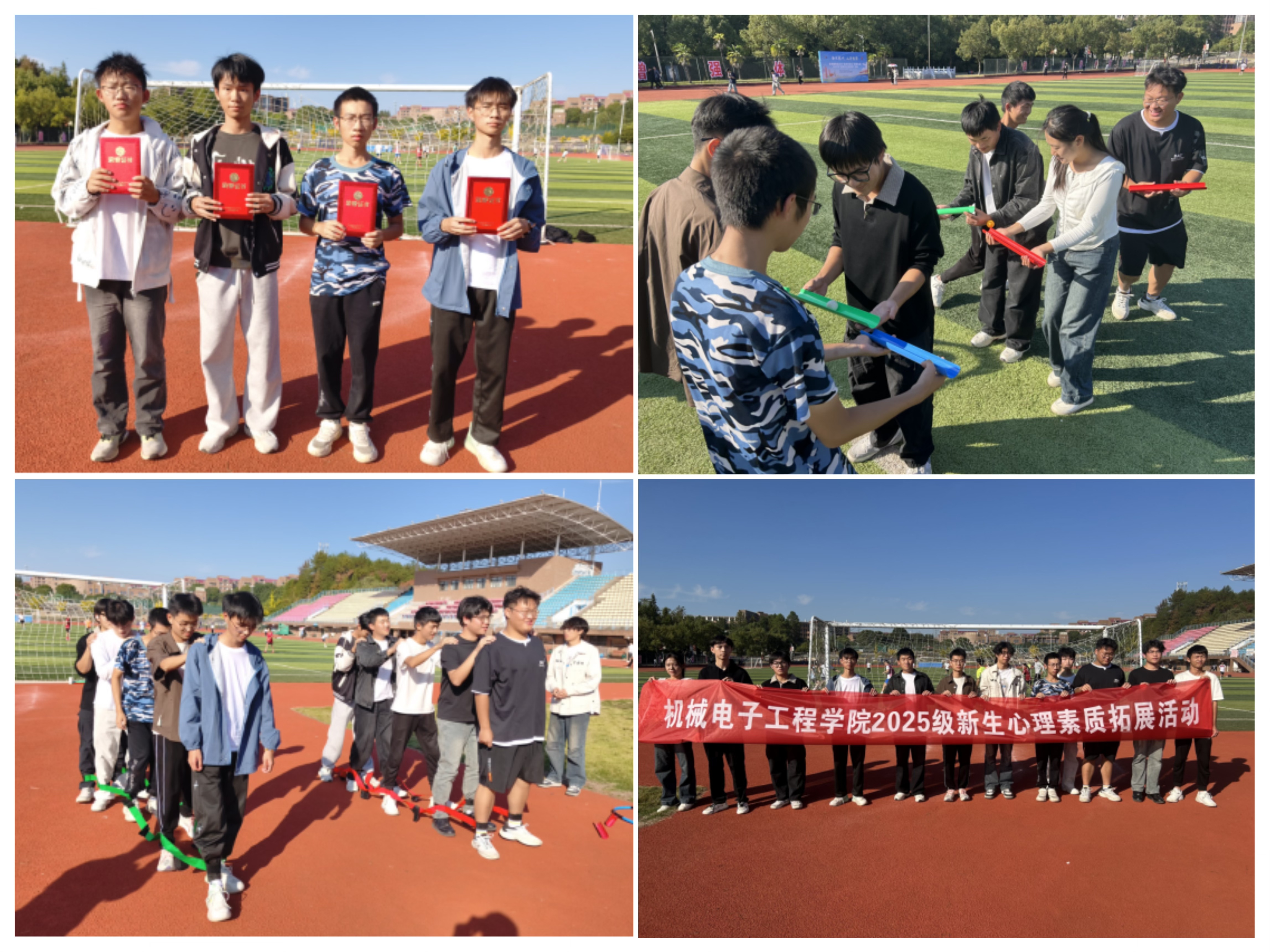 本网讯(刘光盛)10月16日,学院为2025级新生精心策划的心理素质拓展活动在学校第一田径场热烈开展。本次活动以“团结、沟通、协作、成长”为主题,通过一系列富有挑战和趣味的团队项目,帮助新生快速融入集体,增强团队协作与心理适应能力。
